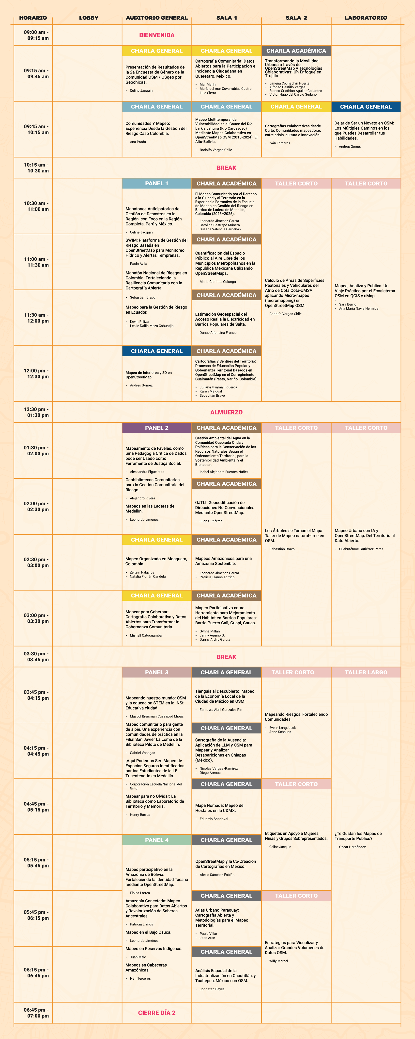 Nuestro objetivo es reunir a los diversos usuarios que componen la comunidad de mapeo abierto y hacer que todos se sientan bienvenidos a participar, hablar, hacer preguntas y participar en el evento, las sesiones y las conversaciones. La creciente diversidad de la comunidad de OpenStreetMap incluye aficionados y profesionales, personas de diferentes orígenes étnicos e identidades de género, ricos y pobres, etc. Esta es la comunidad de OpenStreetMap y todos son bienvenidos y animados a asistir.